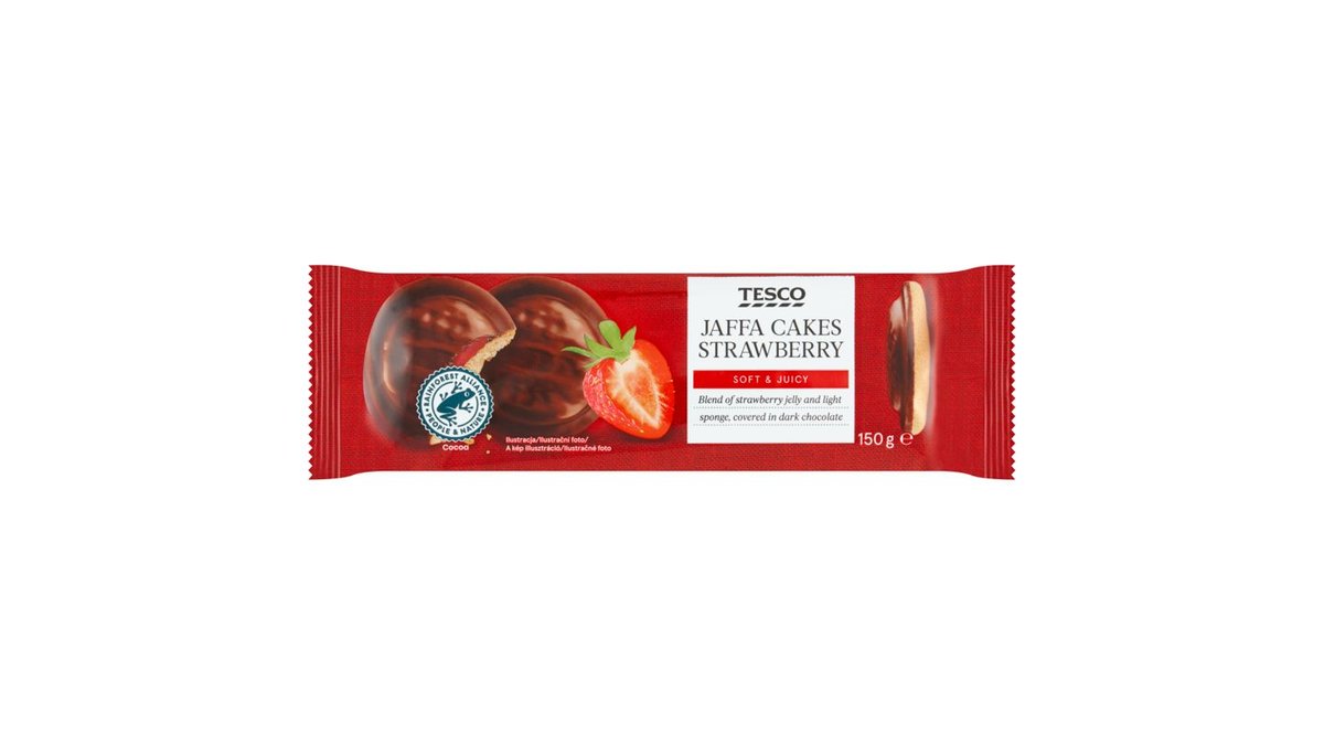 Tesco étcsokoládéval bevont piskótatallér epres zselével 150 g
