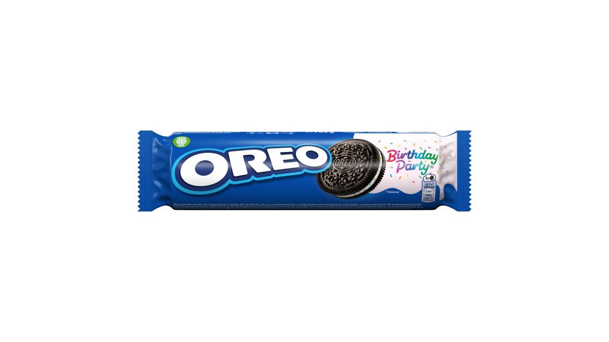 Oreo Birthday Party karamellízű töltelékkel töltött kakaós keksz színes dekorációs pelyhekkel 154 g