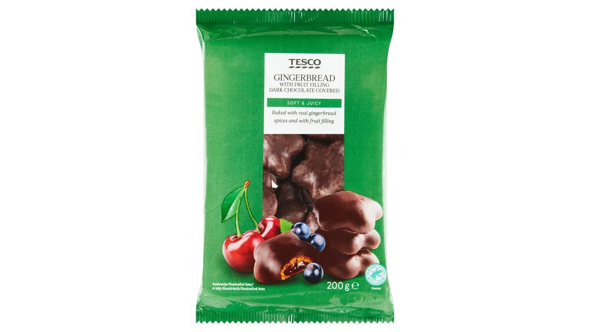 Tesco étcsokoládéval bevont puszedli gyümölcsös töltelékkel 200 g