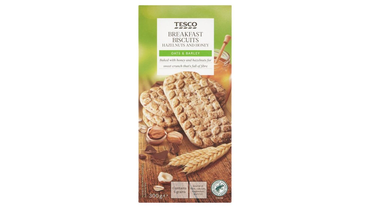 Tesco keksz csokoládédarabokkal, mogyoróval, mézzel és hozzáadott kalciummal, magnéziummal 300 g