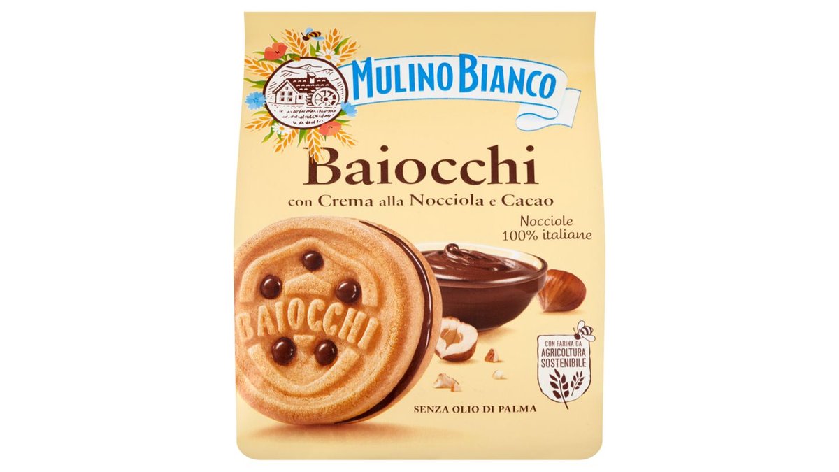 Mulino Bianco Baiocchi mogyorós és kakaós krémmel töltött édes keksz 260 g