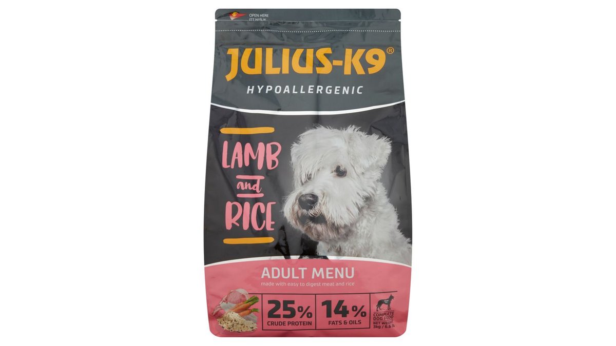 Julius-K9 Hypoallergenic Adult Menu teljes értékű kutyaeledel báránnyal és rizzsel 3 kg