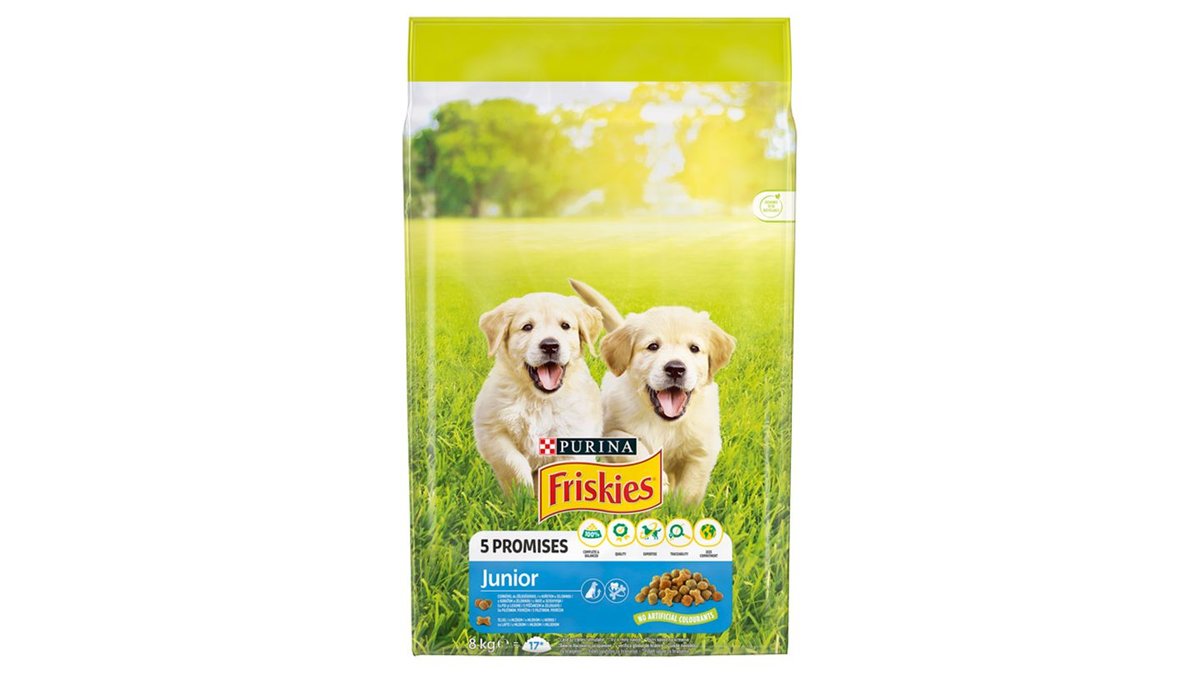 Purina Friskies Junior csirkével, hozzáadott zöldségekkel és tejjel száraz kutyaeledel 8 kg