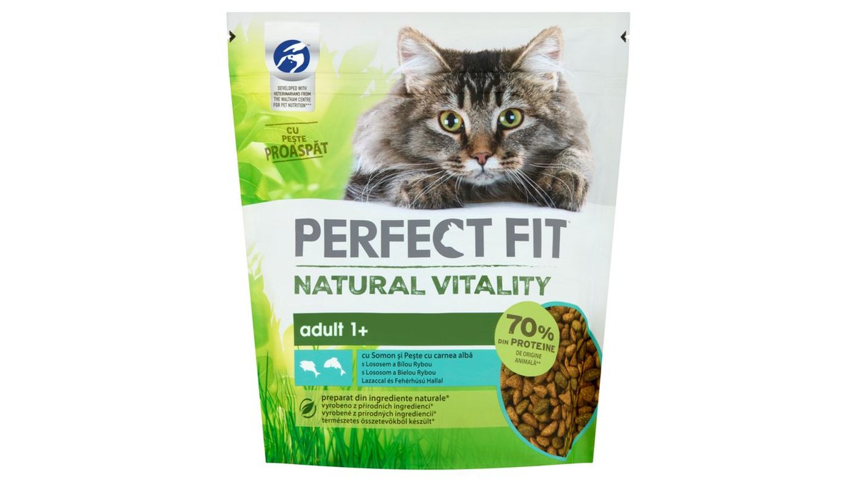 Perfect Fit Natural Vitality teljes értékű száraz eledel macskáknak lazaccal, fehérhúsú hallal 650 g