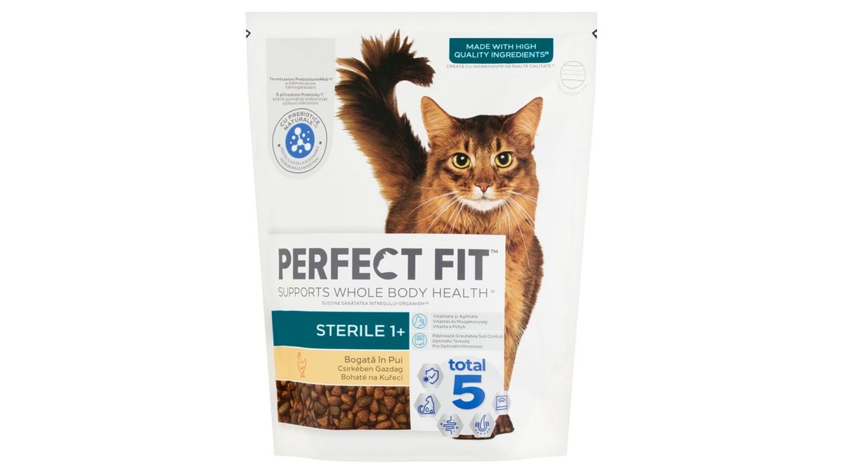 Perfect Fit Sterile 1+ csirkében gazdag teljes értékű szárazeledel felnőtt macskák számára 750 g