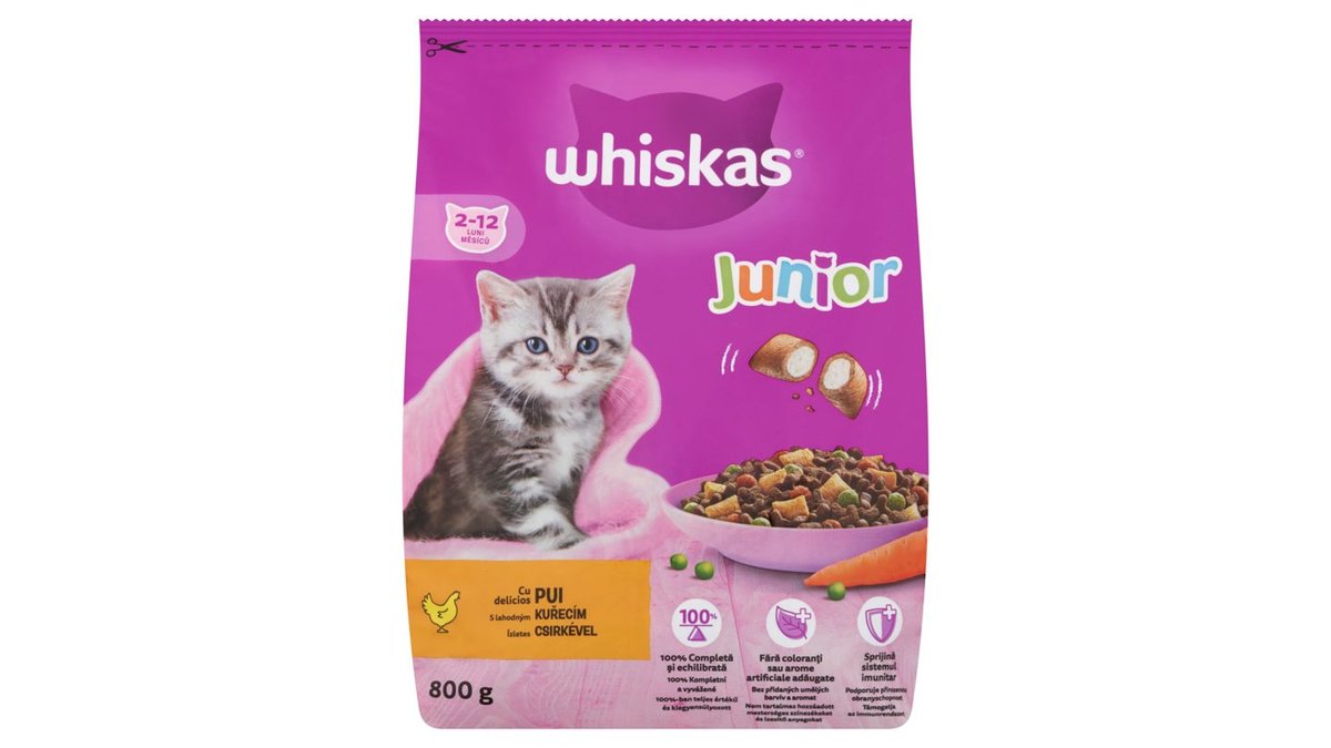 Whiskas Junior teljes értékű szárazeledel kölyökmacskáknak csirkével 800 g
