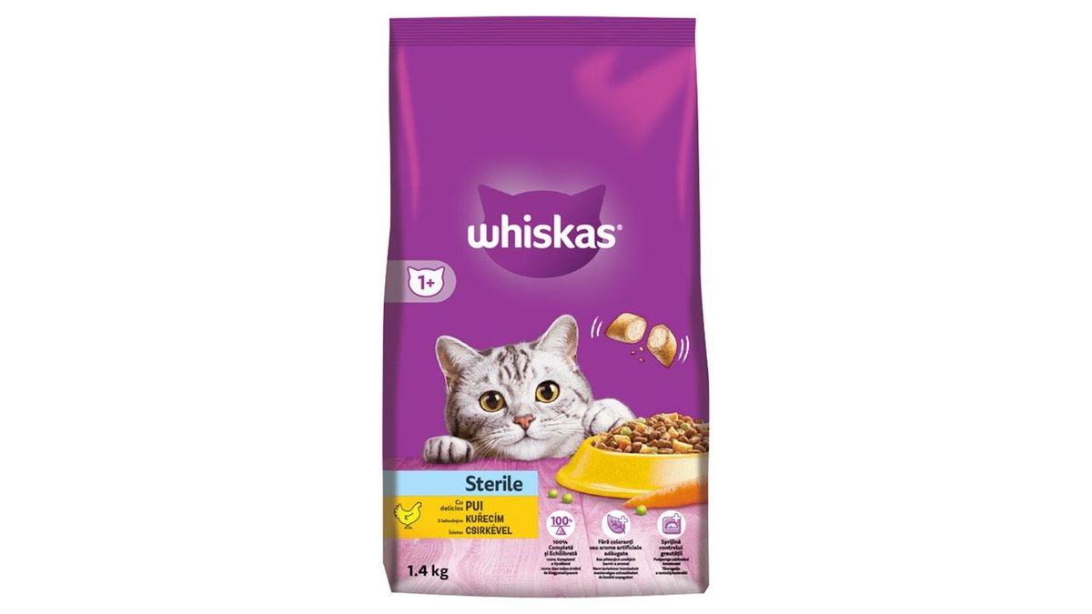 Whiskas Sterile teljes értékű szárazeledel felnőtt macskák számára csirkével 1,4 kg