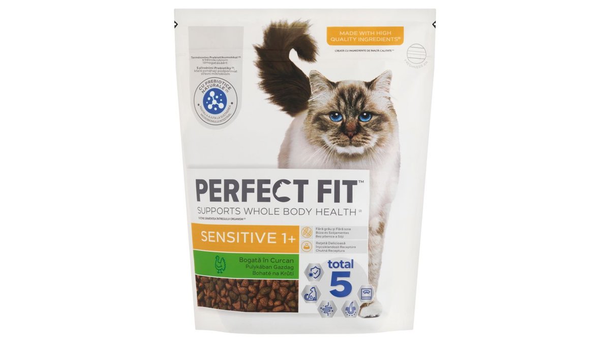 Perfect Fit Sensitive 1+ pulykában gazdag teljes értékű szárazeledel felnőtt macskák számára 750 g