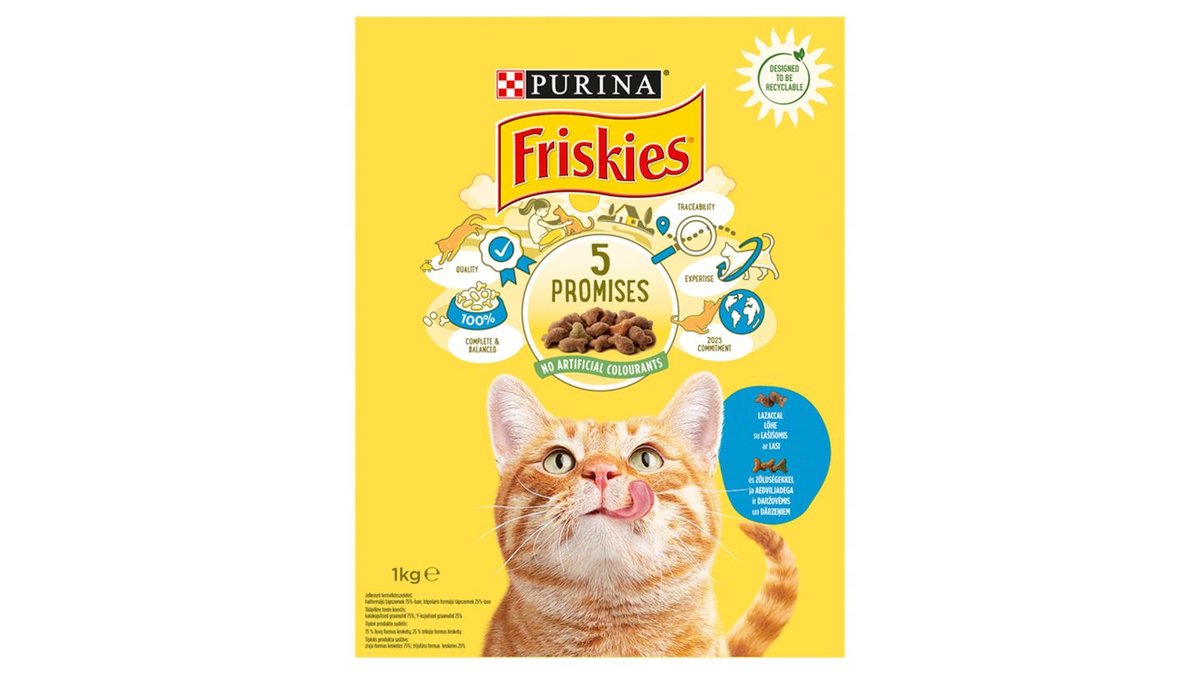 Purina Friskies lazaccal és hozzáadott zöldségekkel száraz macskaeledel 1 kg