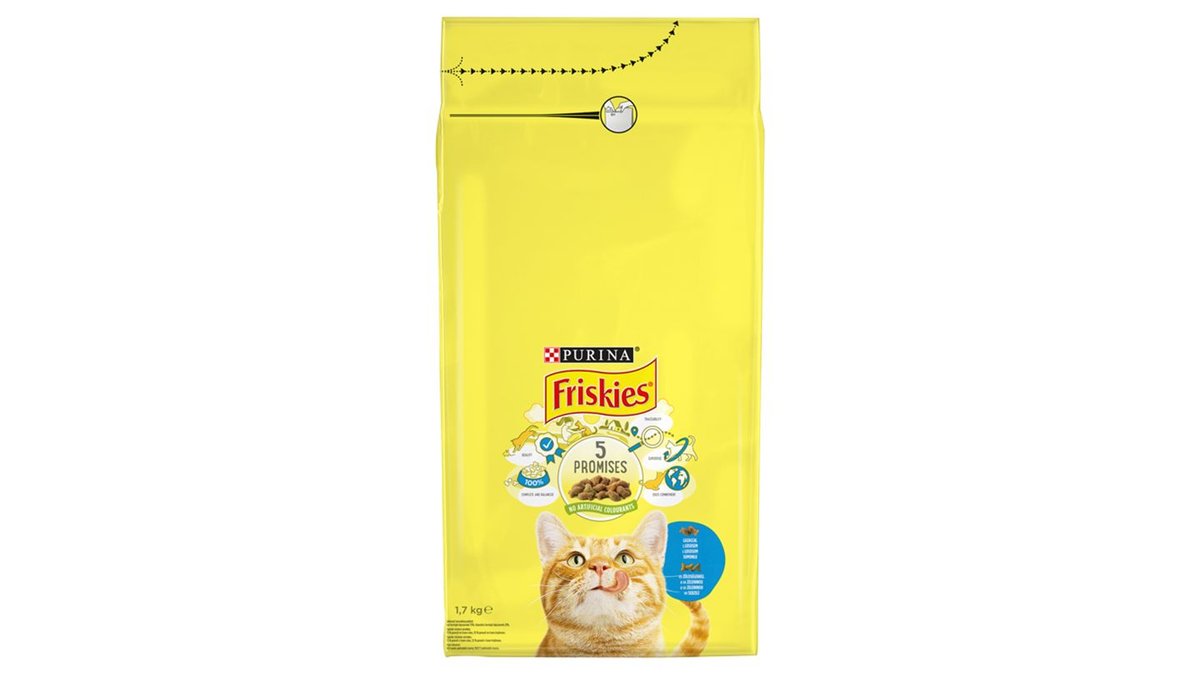 Purina Friskies lazaccal és hozzáadott zöldségekkel száraz macskaeledel 1,7 kg