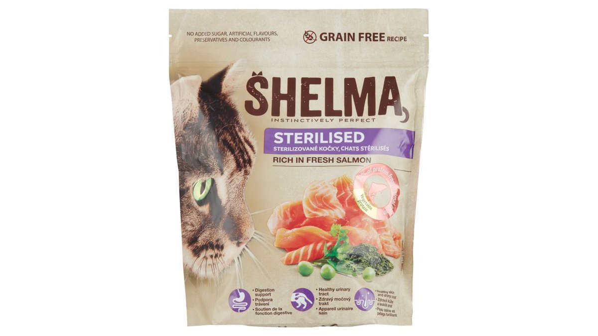 Shelma száraz macskaeledel, macskatáp steril macskáknak lazaccal, gabonamentes 750 g