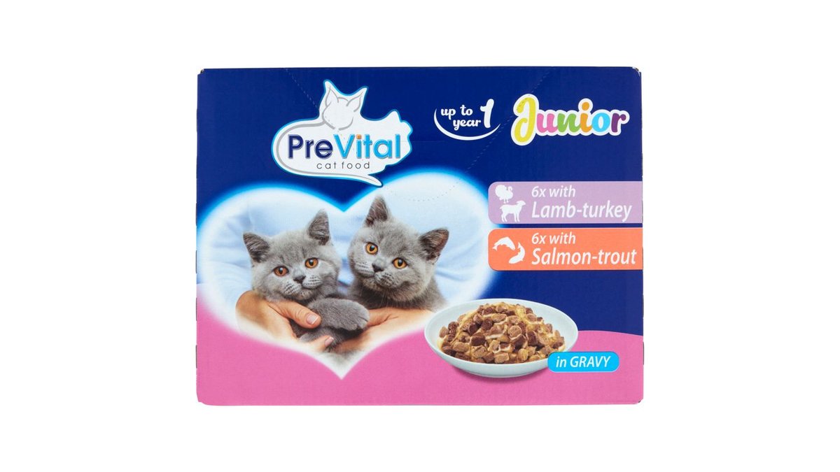 PreVital Junior nedves macskaeledel, macskatáp kölyökmacskáknak szószban alutasakos 12 x 100 g