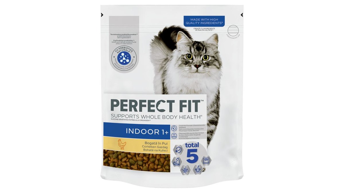 Perfect Fit Indoor 1+ csirkében gazdag teljes értékű szárazeledel felnőtt macskák számára 750 g