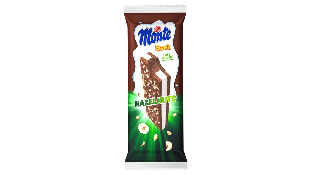 Zott Monte Snack tejes, tejcsokoládés-mogyorós krémmel töltött sütemény 29 g