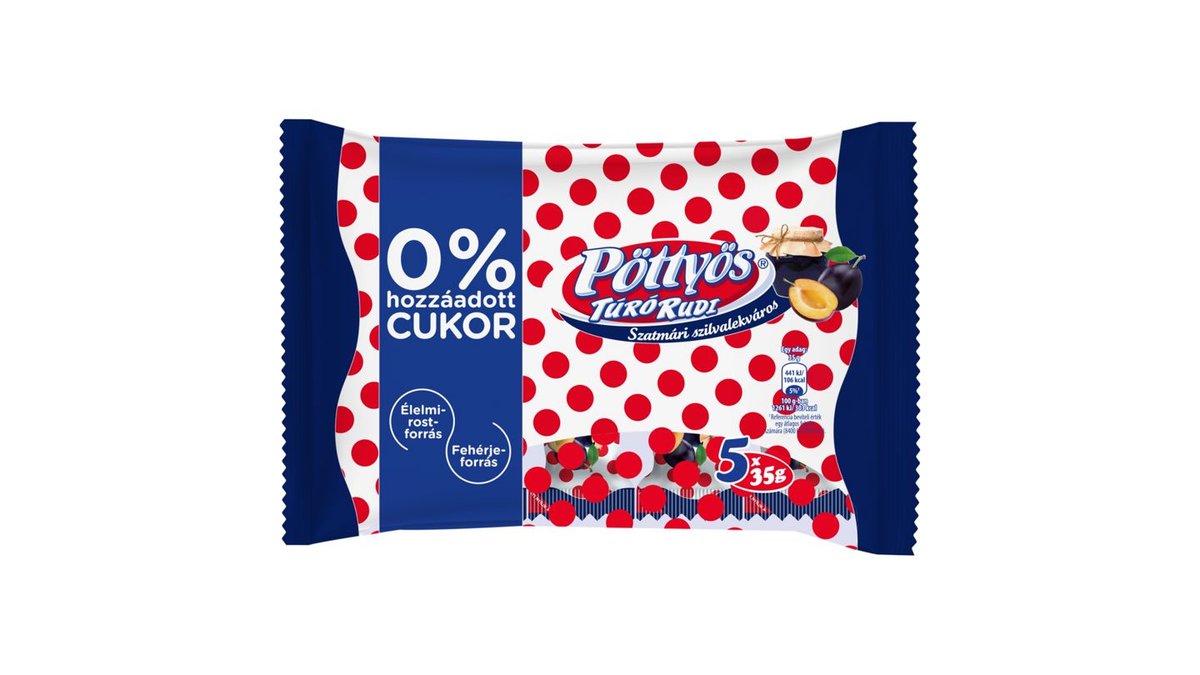 Pöttyös Túró Rudi desszertkészítmény szilvalekvárral, hozzáadott cukor nélkül 5 x 35 g (175 g)