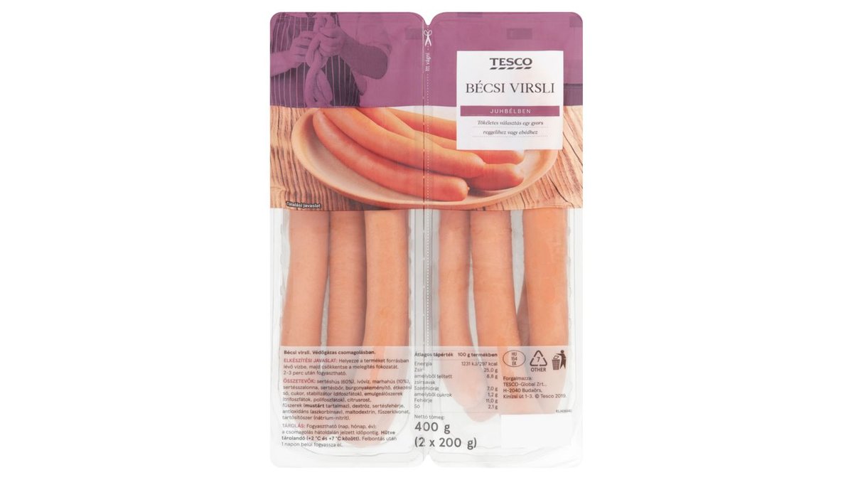 Tesco sajtos virsli csirkehúsból 4 db 140 g