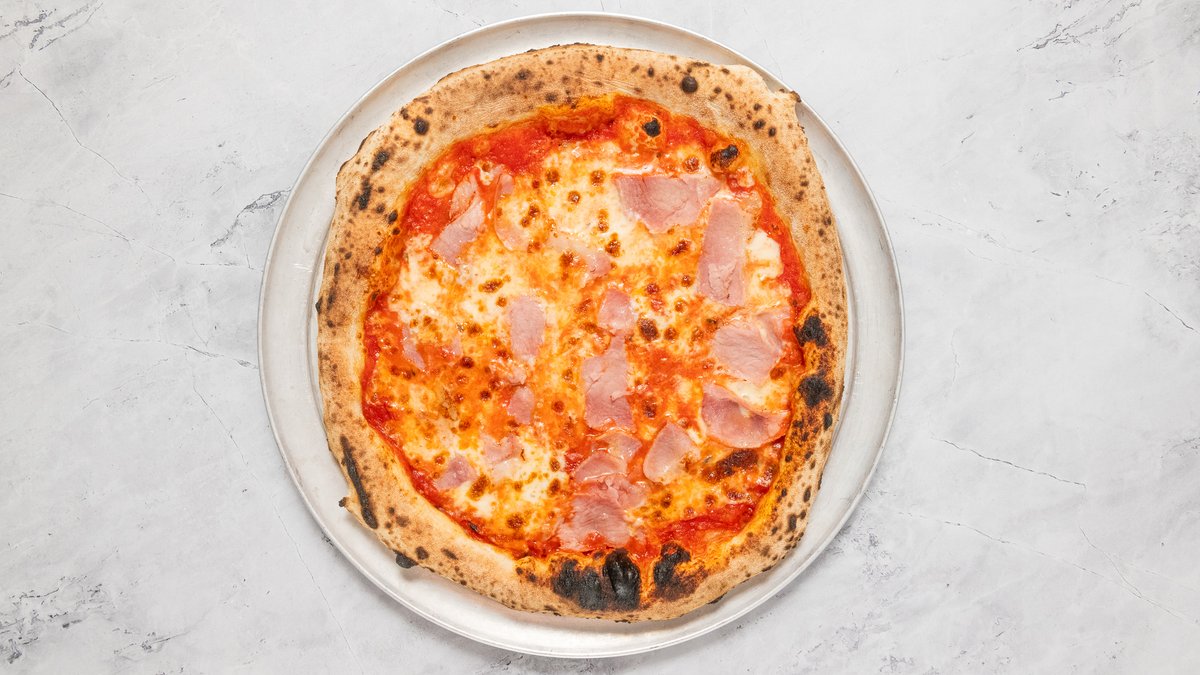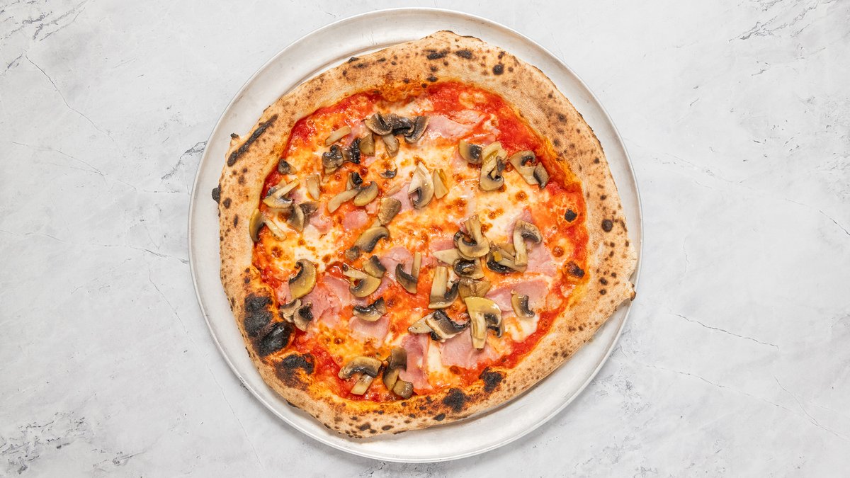 San Marzano DOP paradicsom, Parmigiano Reggiano, Fior di Latte, Proscuitto Cotto, gomba, bazsalikom