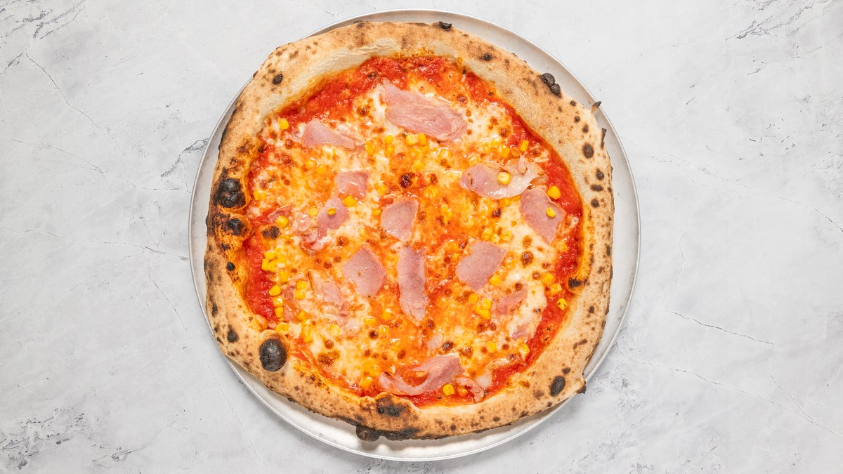 San Marzano DOP paradicsom, Parmigiano Reggiano, Fior di Latte, Proscuitto Cotto, kukorica, bazsalikom