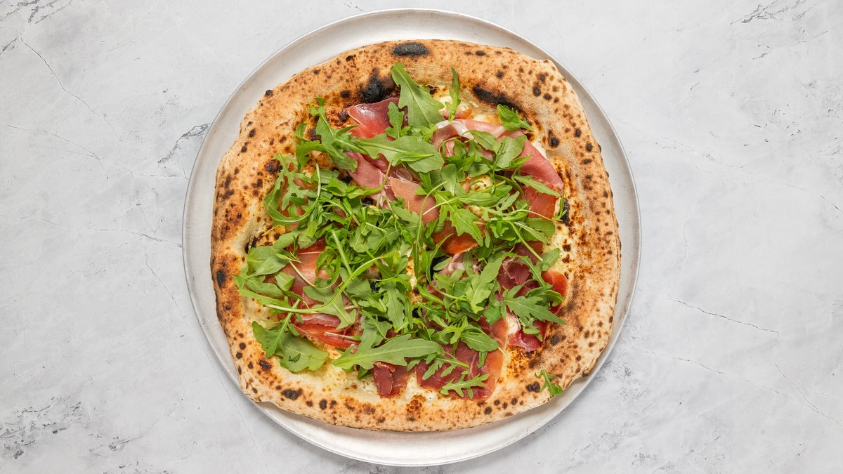 Prosciutto Crudo, Parmigiano Reggiano, Kalamata olivabogyó, szárított paradicsom, articsóka, friss pizzakenyér
