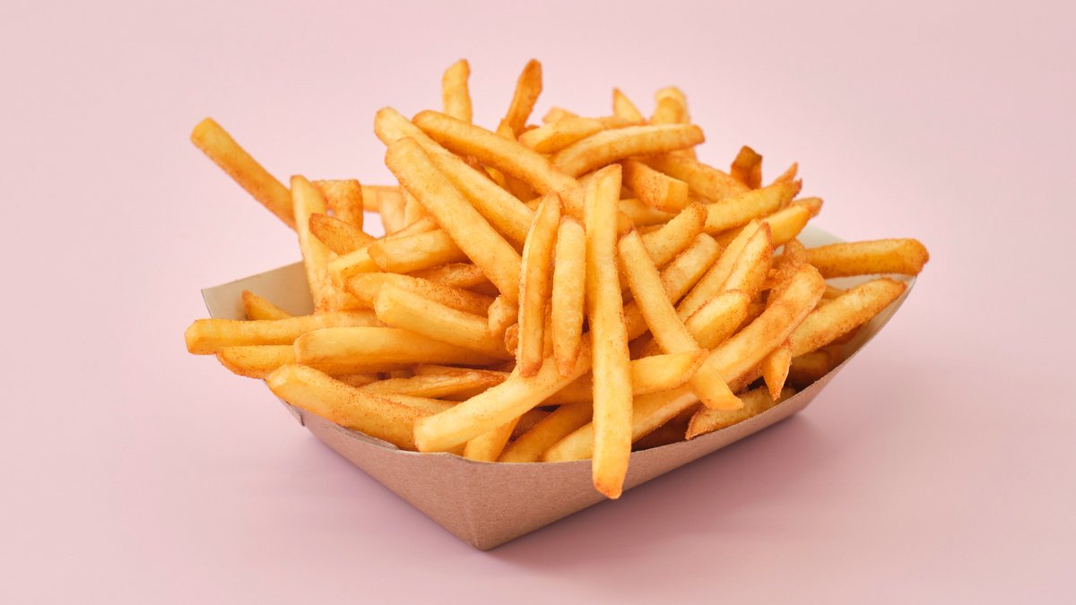 Beikon, ostur, kál, franskar, ostastangir og hamborgarasósa.