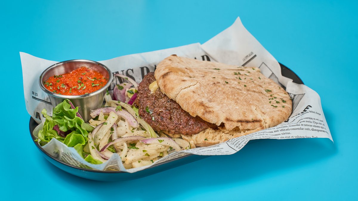 Balkanskur ostafylltur hamborgari með feta eða cheddar osti, úr krydduðu nautakjöti & lambakjöti eða nautakjöti & svínakjöti. Borið fram með lepinja, lauk og sósu að eigin vali.