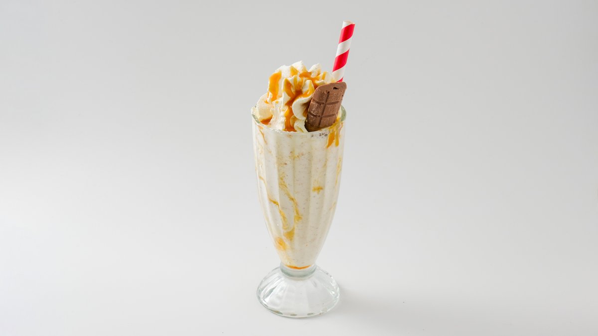 Með ekta Cadbury’s Curly Wurly karamellusúkkulaði, karamellusósu, Curly Wurly bita og þeyttum rjóma á toppnum.