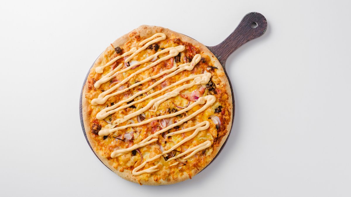 Með blöndu af sýrðum rjóma, hvítlauk og Mexíkóosti á botninum, Tex Mex kjúklingi, nachos, rauðlauk, S&P Ostablöndunni og Chili majói á toppnum.
