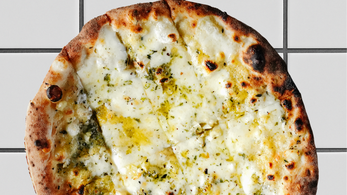 Our Neapolitan-style pizza is made from slow-rising sourdough and is cooked at 500°C. This gives our pizza base a light texture and complex flavors and keeps the toppings extra fresh.