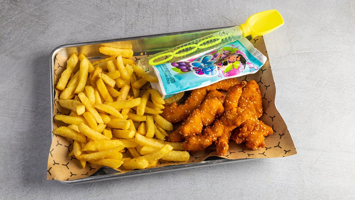 5 יח׳ שניצלונים מוגש עם צ׳יפס, טרופית והפתעה