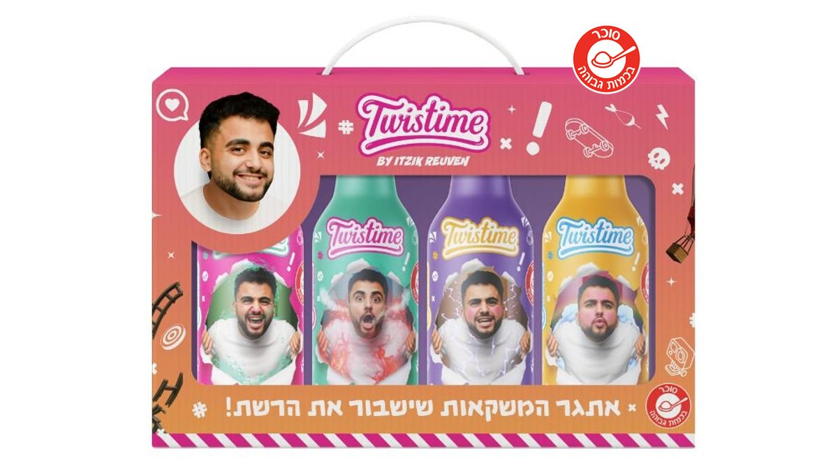 טוויסטיים משקה מוגז בטעם תות קיווי מתוק ברמות