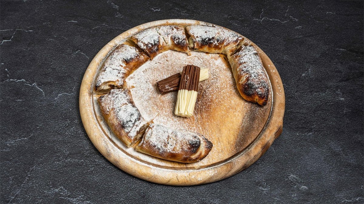בצק עלים ממולא בגבינת מוצרלה ובולגרית, מוגש עם ביצה קשה, רסק עגבניות, סחוג ו-2 תוספות לבחירה
