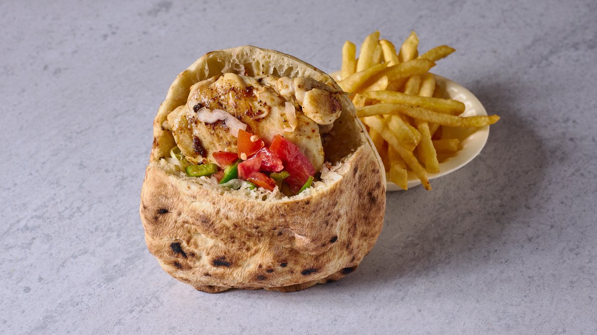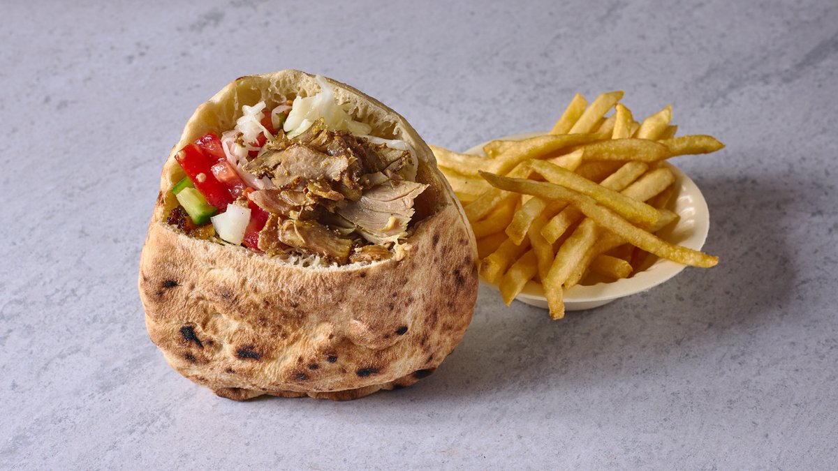 שווארמה, מיקס סלטים, צ׳יפס אישי ולחם לבחירה התמונה להמחשה בלבד