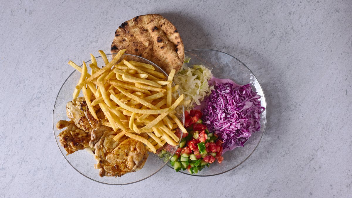 חזה עוף, מיקס סלטים, צ׳יפס אישי ולחם לבחירה
