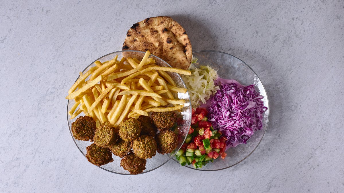 12 כדורי פלאפל, מיקס סלטים וצ׳יפס אישי