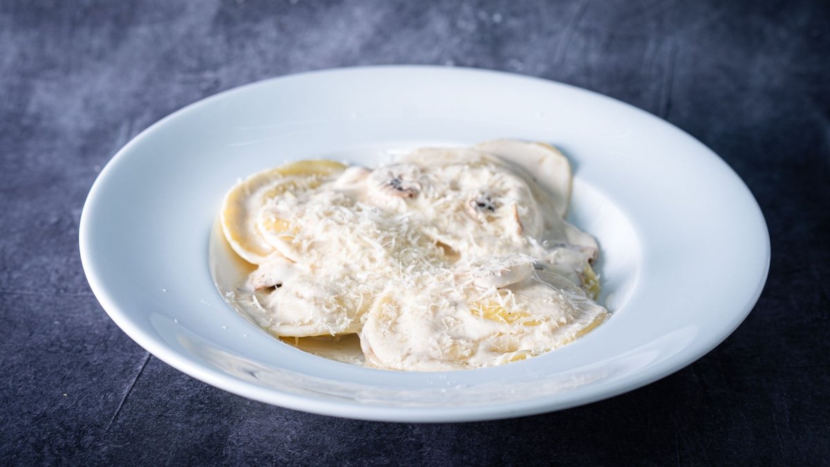 רביולי לבחירה ברוטב שמנת פטריות ביתי