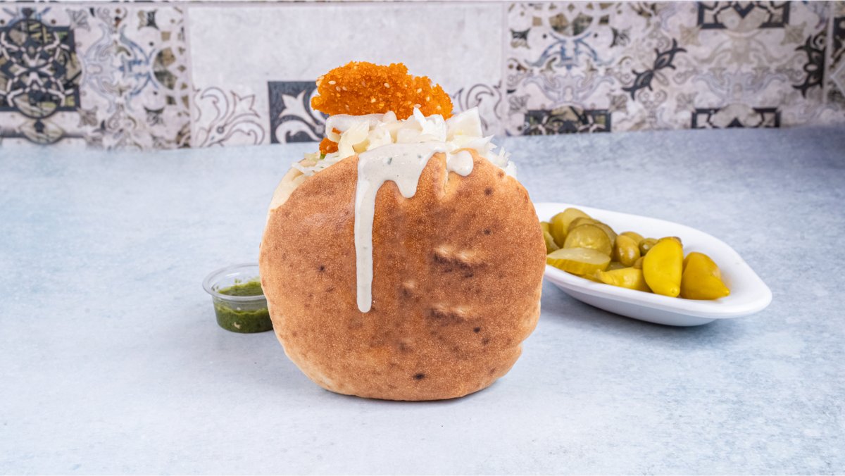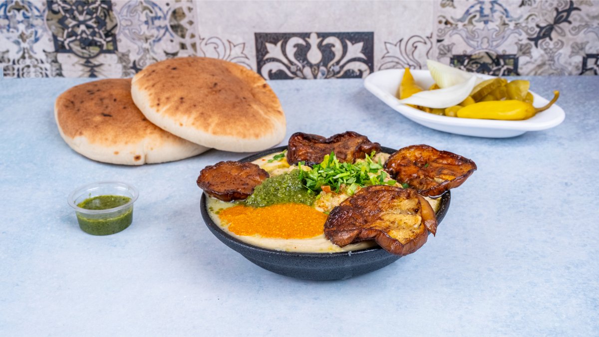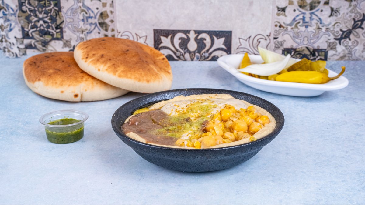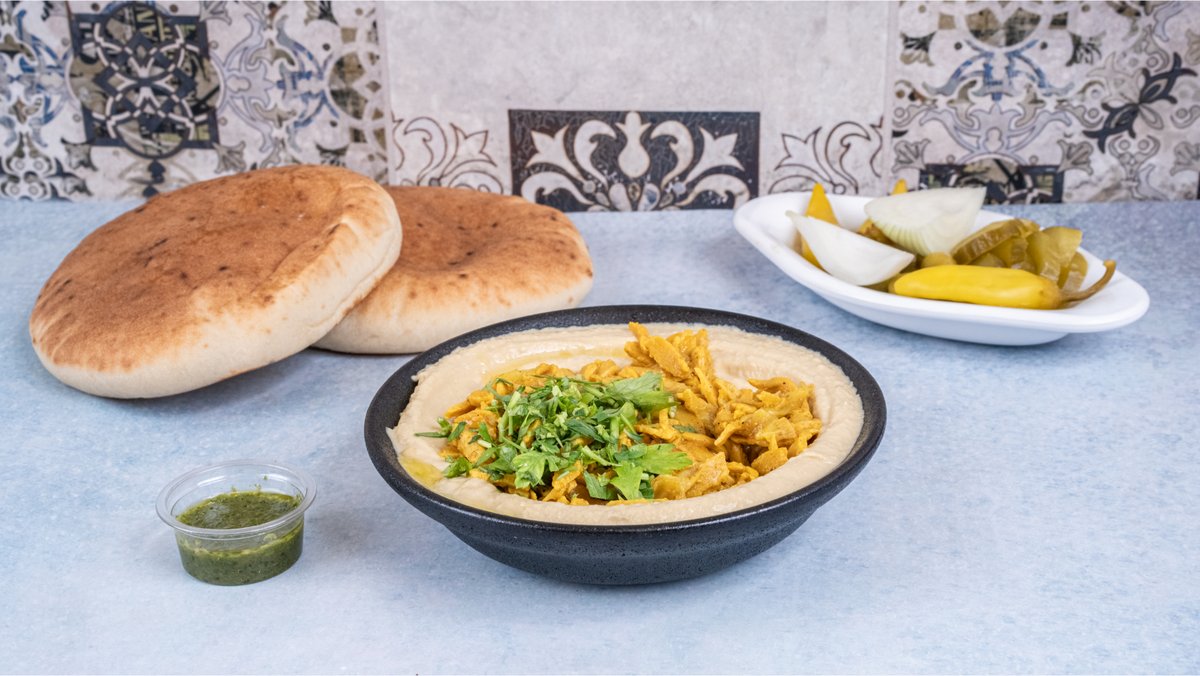 מוגש עם 2 פיתות וחמוצים | ללא חומוס