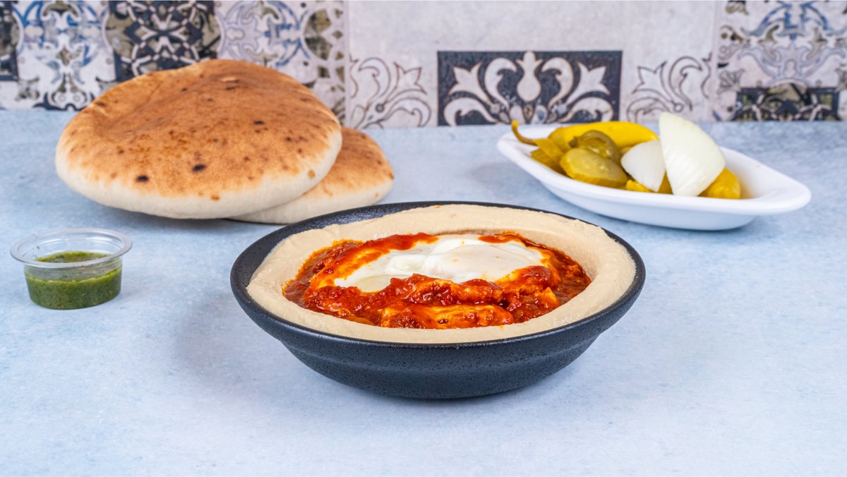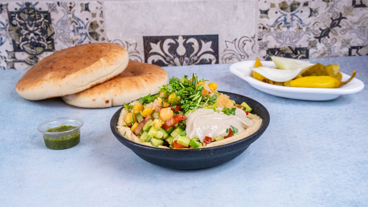 מוגש עם חומוס ותוספת לבחירה