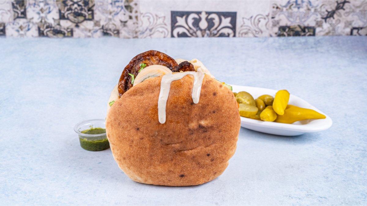 מוגש עם 2 פיתות וחמוצים