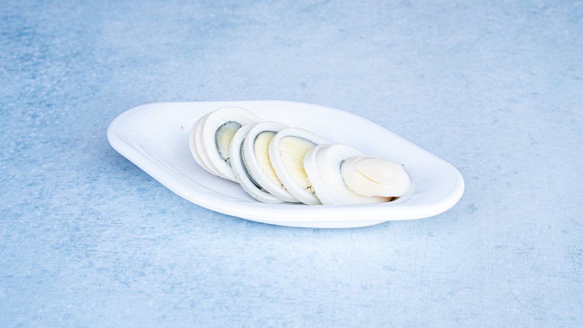 חצילים וביצה קשה, מוגש עם חמוצים, בחרו ממרחים וסלטים