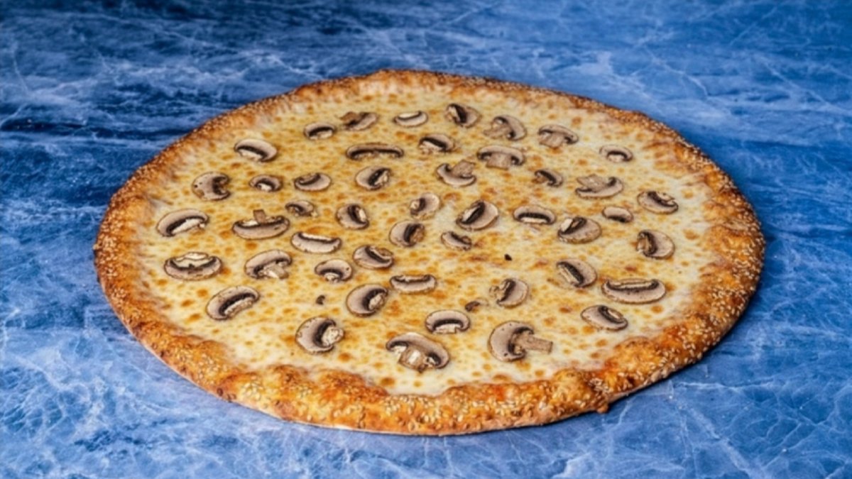 פיצה על בסיס רוטב שמנת אלפרדו עם תוספת פטריות טריות מעל. מגיעה עם שומשום על הקצוות (ניתן להוריד). מוגש לצד תבלין פיצה וצ'ילי גרוס