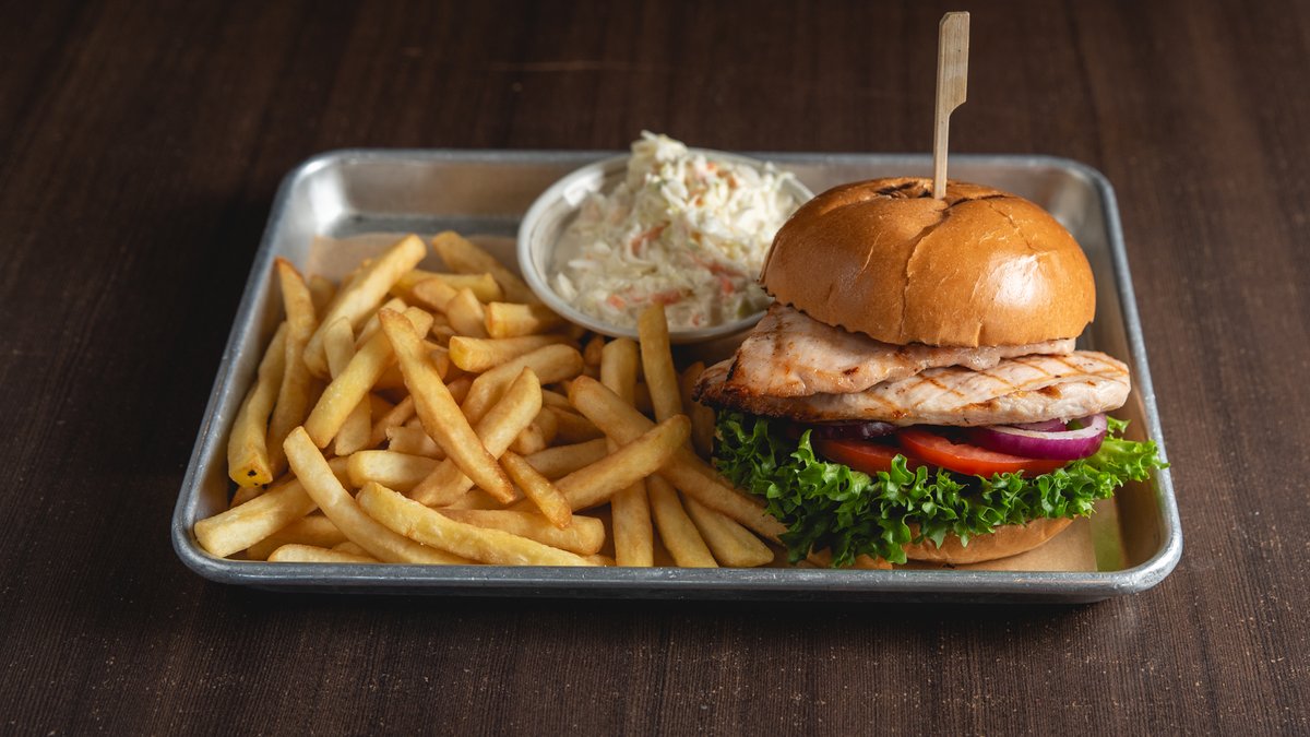 חזה עוף בגריל עם חסה, עגבניה ובצל | מוגש עם צ׳יפס
