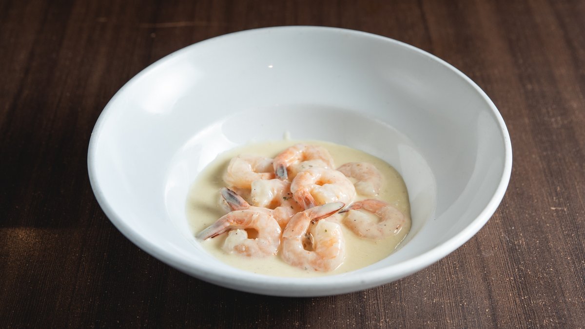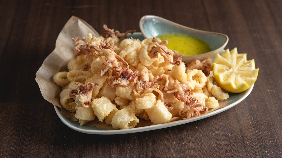 כ-350 גרם קלמרי מטוגן ברוטב חמאה, שום ויין