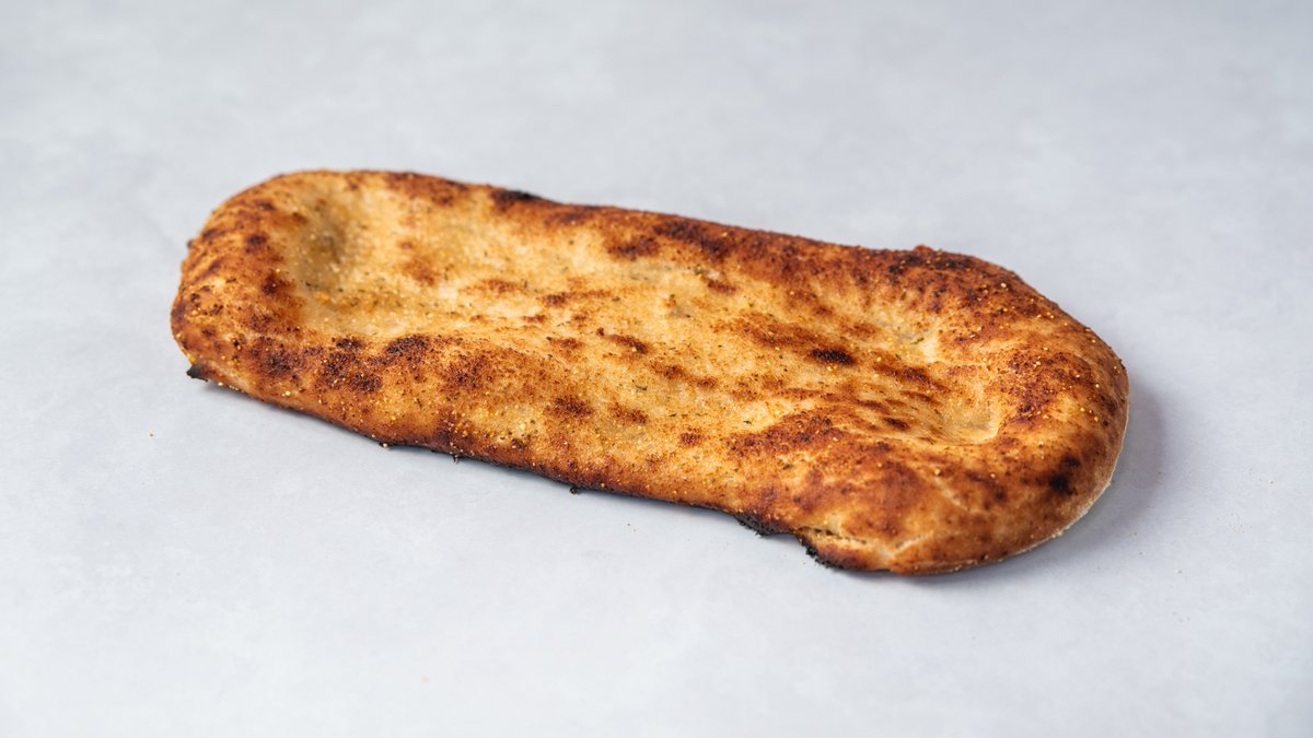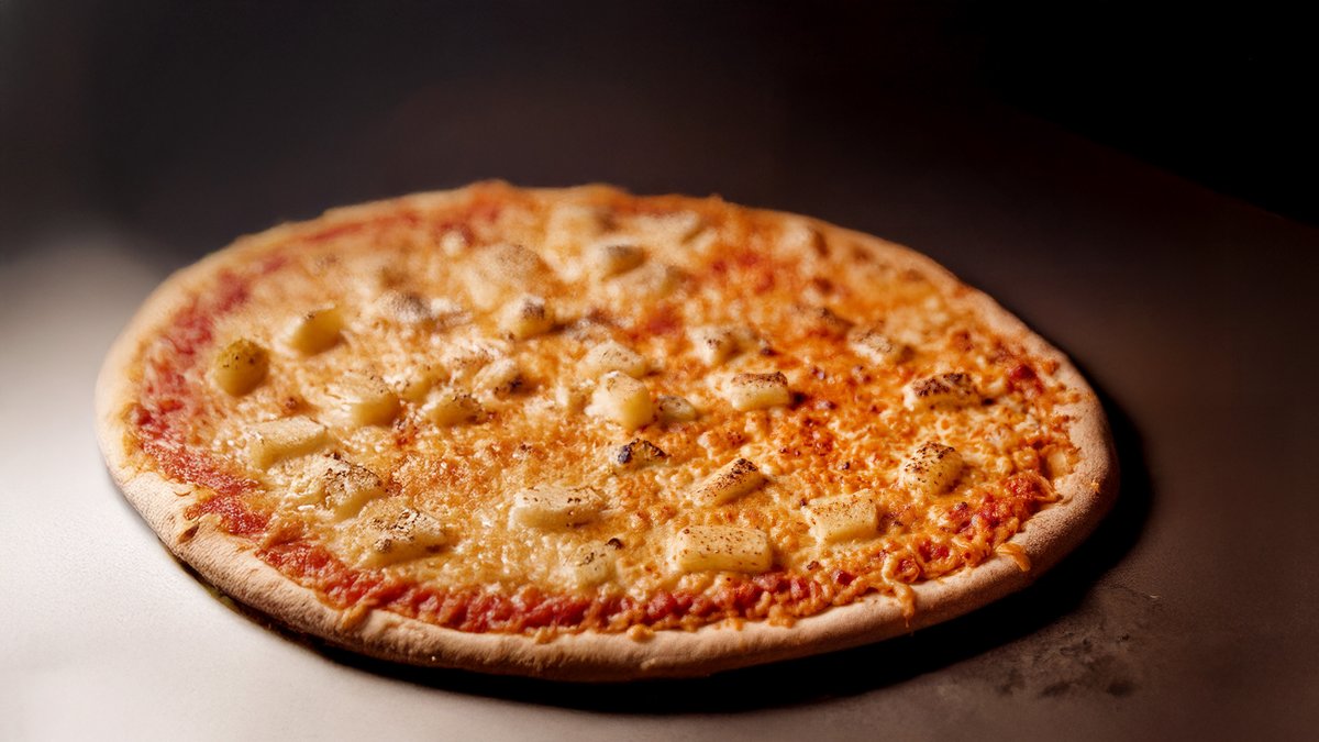 בצק דק, רוטב שום חריף, אננס, גבינה פרמז'ן