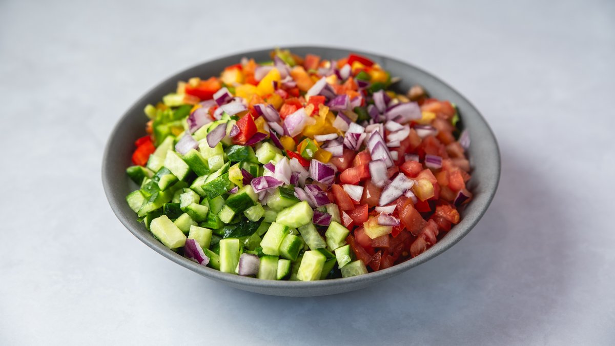 חסה, עגבניה, מלפפון, פלפלים צבעוניים, בצל | מוגש עם פוקאצ׳ה לבחירה