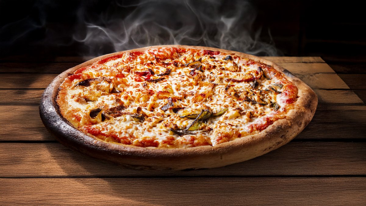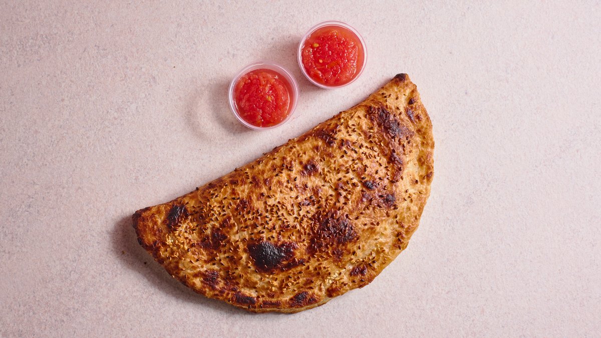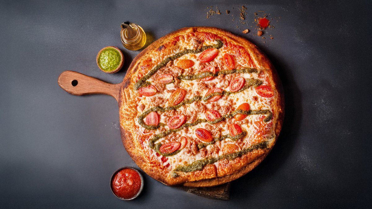 בצק סטנדרט, רוטב עגבניות בזיליקום, פלפלים קלויים, קונפי שום, גבינה בולגרית