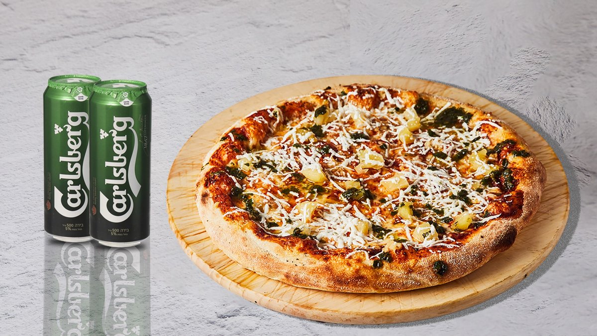 פיצה בהרכבה + 2 פחיות בירה קרות !