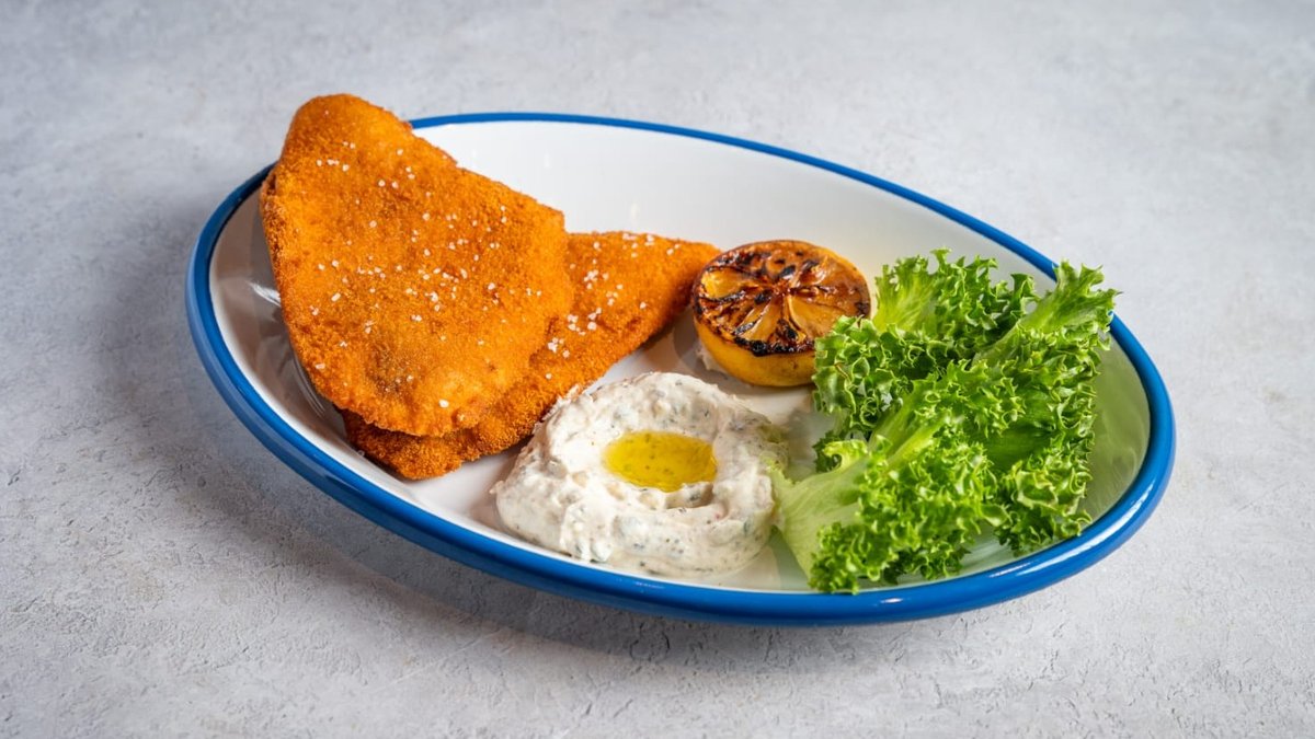 פילה דג לבן בציפוי פירורי לחם מוגש עם תוספת לבחירה
