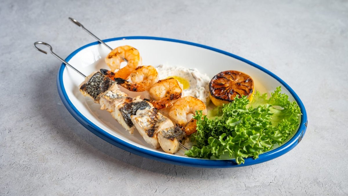 דג לבן ושרימפס עשויים בג'וספר מוגש עם תוספת לבחירה