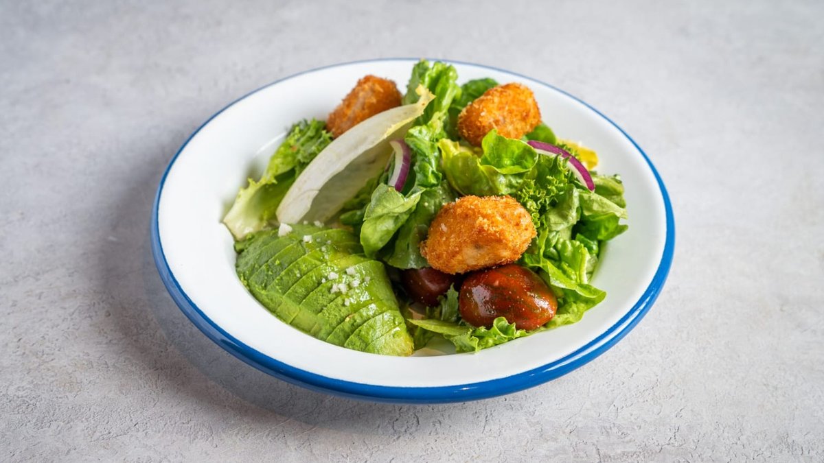 סלט עלים ירוקים עם קריספי סלמון ואבוקדו