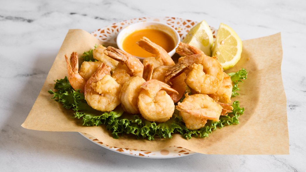 שרימפס מטוגן בקמח ופפריקה מוגש עם איולי שאטה